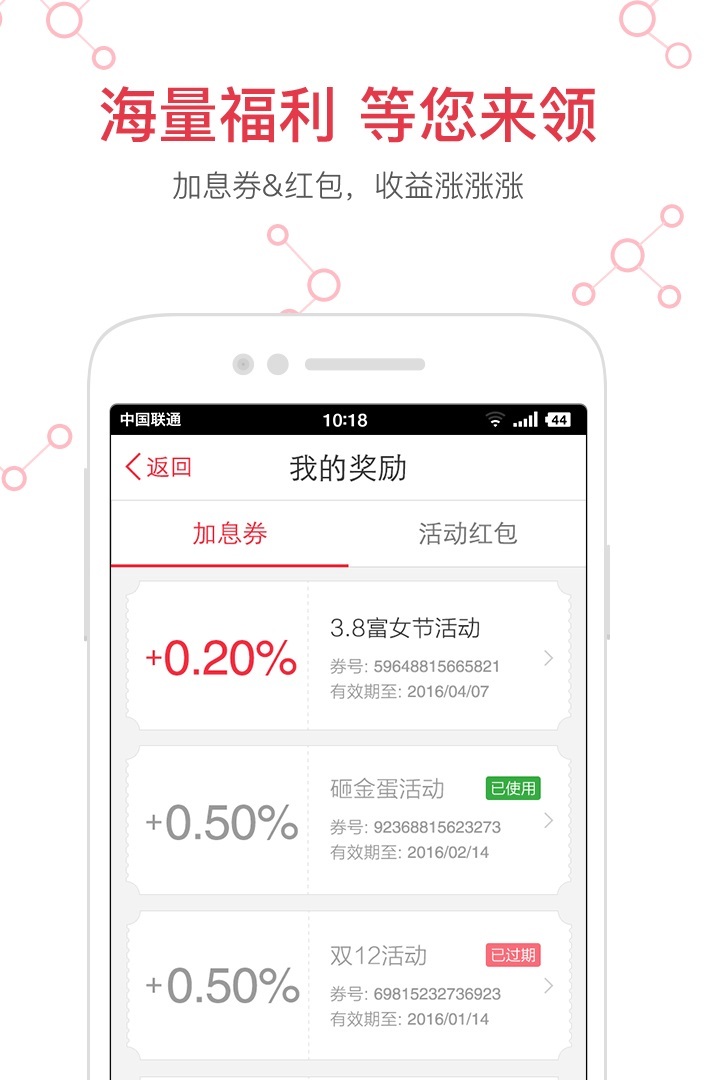 5.有惊喜:加息劵、红包不定期来袭,让您赚得更多。
