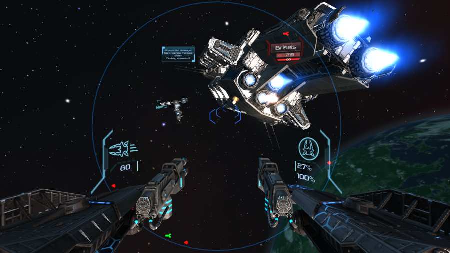 ●在移动设备触摸屏上播放或使用与Google Cardboard兼容的护目镜在VR中体验太空战。