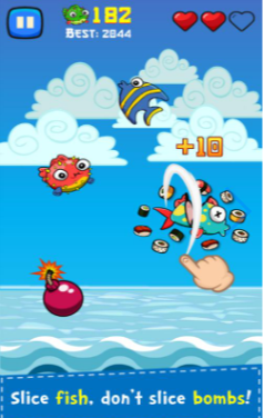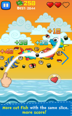 寿司忍者是一款操作简单趣味十足的切割类游戏,玩家需要通过点击屏幕相同的位置来进行切割,将鱼切成片,制作成美味的寿司,注意不要切割到炸弹哦。