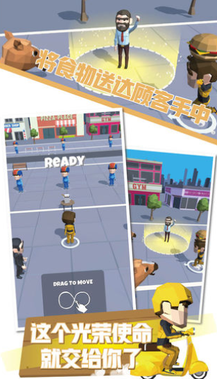 《送餐大作战》是一款趣味性极强的比拼游戏,化身为一个送餐达人,让顾客的外卖能够顺利的到达顾客的手里,会有一些同行进行抢单,过分的还有抢外卖,要时刻小心,只有完成了相应的订单才可以得到奖励。