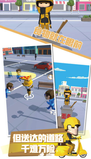 在游戏之中,玩家们将扮演着黄色阵营的外卖小哥。外卖小哥要在规定的时间内将外卖送到顾客手里,给予客户最贴心的服务。而你的外卖被蓝色阵营的外卖小哥抢去了,阵营之战,一触即发。