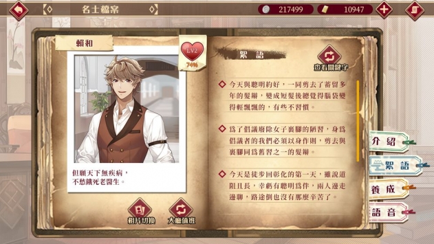《1930浪漫谭》是由开发商WeGames Corporation开发的一款画风二次元可爱的角色扮演类游戏,玩家发现自己家中的藏书全部变成了白纸,游戏设定在一个完全虚构化的1930年代的中国,玩家们的身份将会是不小心误闯进神秘时光屋的大学生!人物立绘也非常文艺,不同攻略对象的性格和造型也截然不同,玩起来很有成就感!