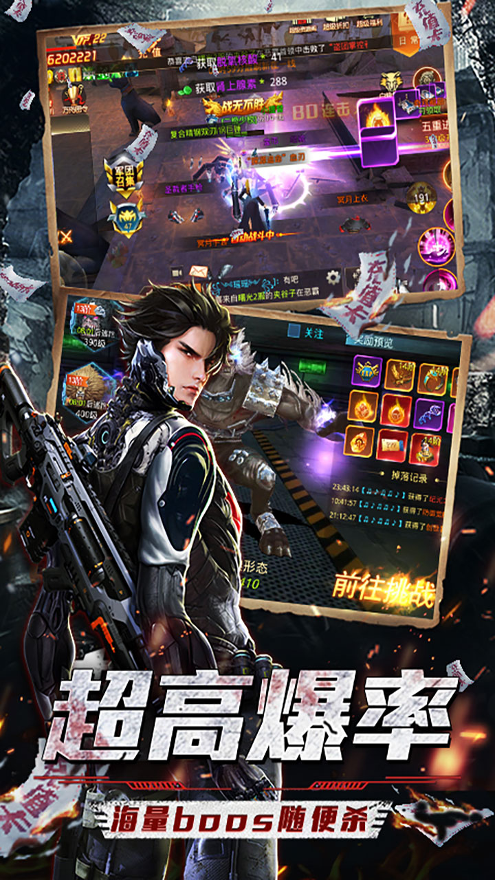 4.活跃还送欧皇黑金卡和无限抽奖券!海量钻石、彩钻、100元充值卡和极品材料等你来拿!抽奖积分还可兑换极品绝版时装幻化套装!燃爆的福利供你在废土大陆寻找末日曙光!