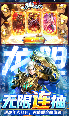 在群英之战福利版中玩家只要登录即可获得无限充和VIP,福利多多,更有许多模式等你来体验,展现高超的技能,玩法自由度高,玩家需要完成收集大量的神将,和你一起对战沙场,更多游戏内容等你来感受,此次带来的是群英之战星耀版,感兴趣的朋友就点击下载享受对战的乐趣吧。