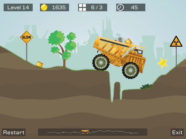 狂野重卡无限金币手机版是一款趣味休闲类的模拟闯关的游戏,游戏已经破解了无限金币,游戏中玩家不要使用金钱购买各种各样不同类型的重卡进行比赛,比赛关卡中崎岖的山路和千奇百怪的机关障碍物需要玩家控制重卡小心抵达终点才可以顺利的通关,精美的卡通画风和趣味的游戏内容玩法。