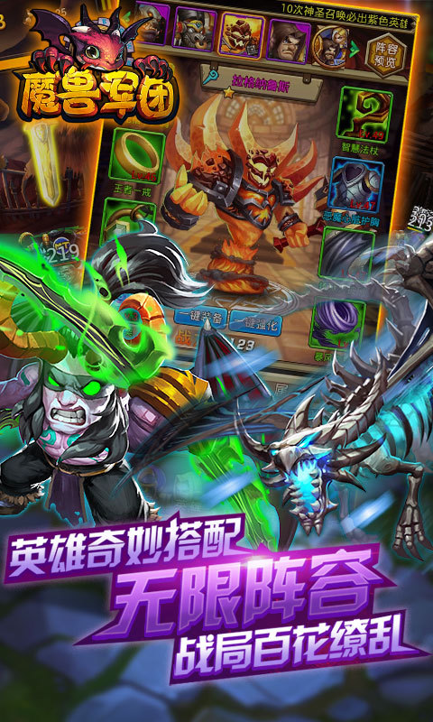 《魔兽军团》火爆来袭,作为一款欧美题材微操即时制手机游戏。在游戏里,玩家将化身一名实力强大的战士,作为主角带领众多英雄一起斩妖除魔。大战一触即发,你又岂能错过?《魔兽军团》,邀你来战!