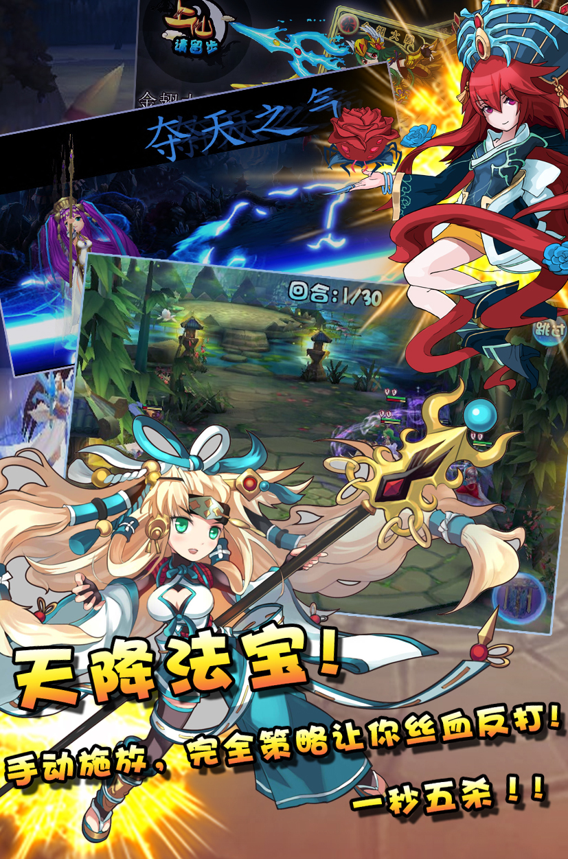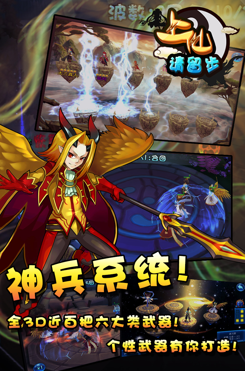 手动施放的上古法宝,打破对战只拼数值的界限,体会到丝毫间决胜千里之外的快感,让你丝血反打,一秒五杀!知名声优配音的的对白,让你的推图过程不再无聊!多种族联合的战斗,打破人仙妖间的一切隔阂!两百层试练塔,谁能成为突破试炼的王者?武器类型匹配系统,打造属于每个神将特有的稀世神兵!