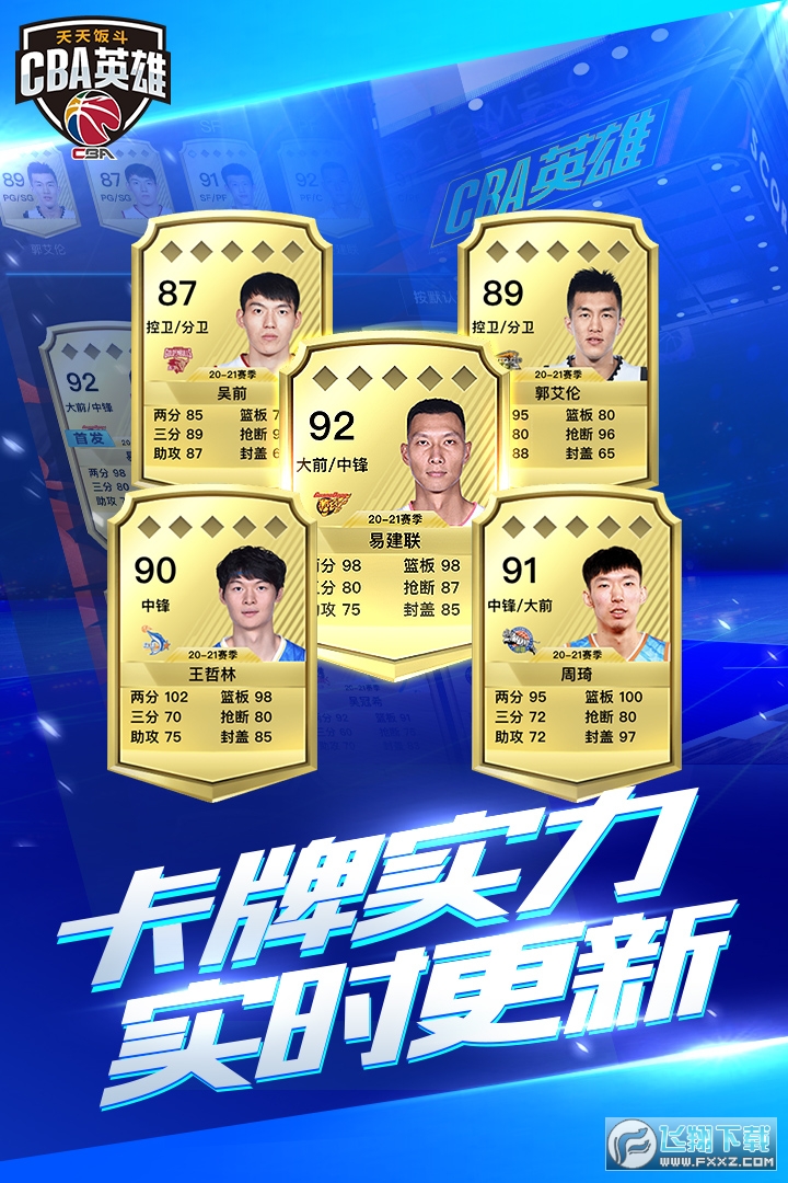 一款以CBA球星为题材,集球星、阵容对抗为一体的综合性游戏。 玩家可通过组建自己的梦幻球星阵容来与其他玩家展开实时对抗,从而成为一名优秀职业CBA职业经理人。 目前《CBA英雄》开放的卡种包括新秀赛季卡,巅峰卡,金卡,银卡,铜卡。