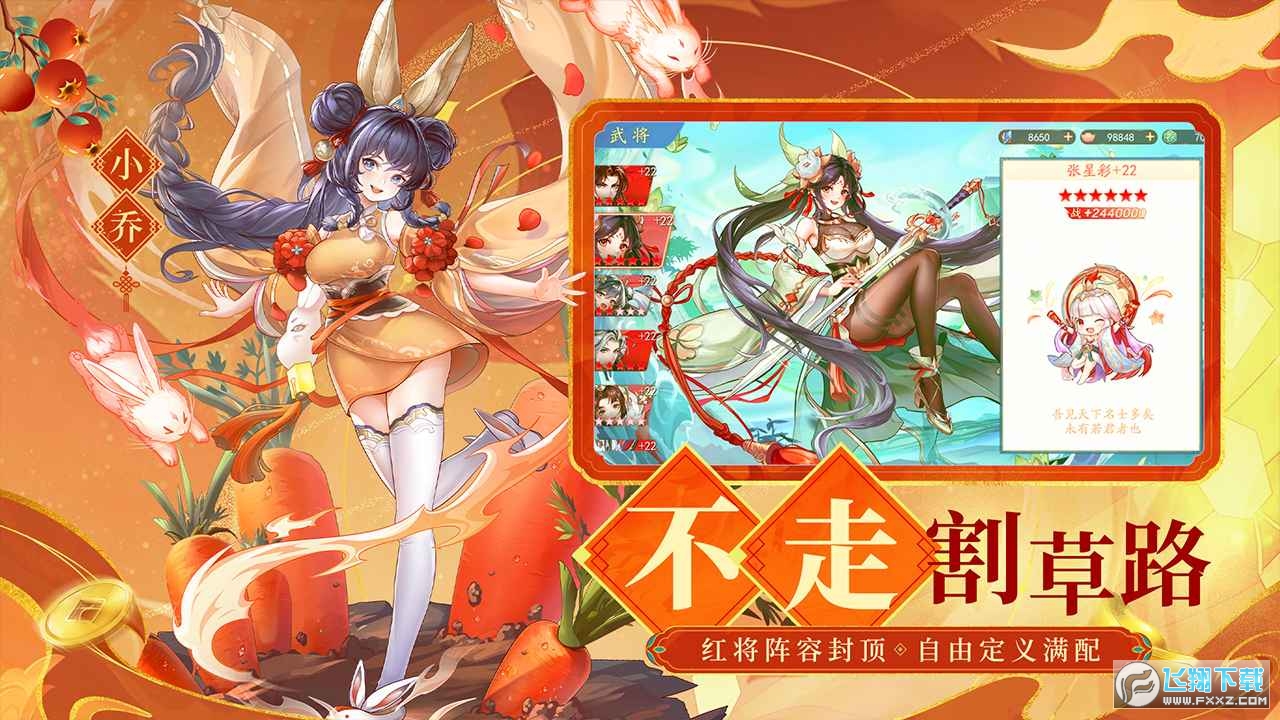 宴桃园豪杰三结义,独立小型社交系统供三人同行共闯三国;12种社交玩法每日轮换,全军团皆可参与,更有公平的奖励分配机制,只需比拼手速就能获得核心资源;特设军团功能,共享喜悦,互沾欧气;更有独特的借将助战功能,在兄弟的助力下,一路过关斩将成为常胜将军!