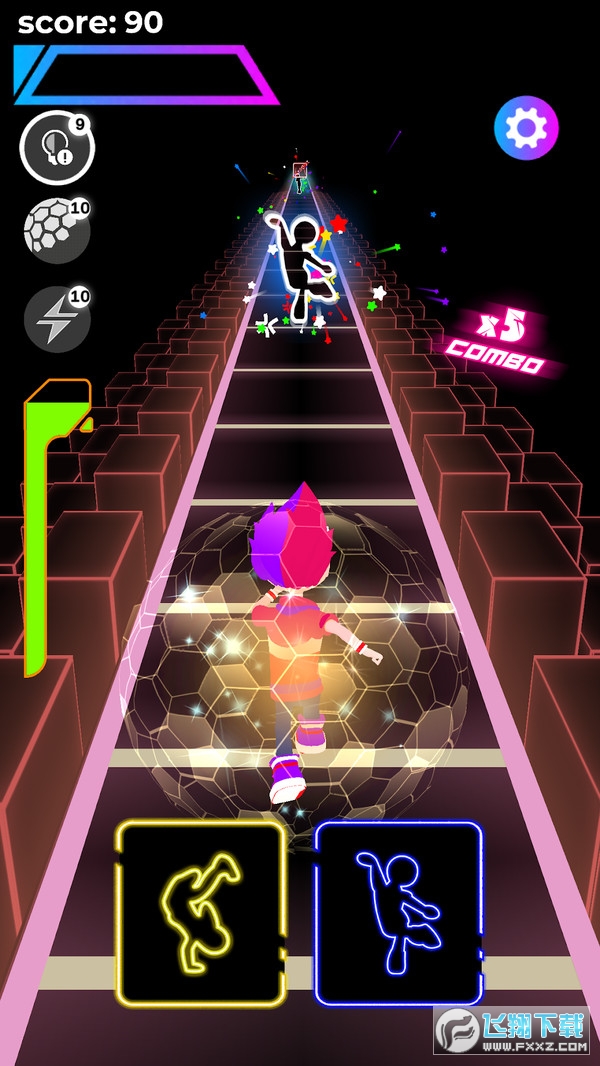 2、比比看谁是真正的闯关大师,一个简单的操作就可以顺利的完成任务,成为最佳舞者。