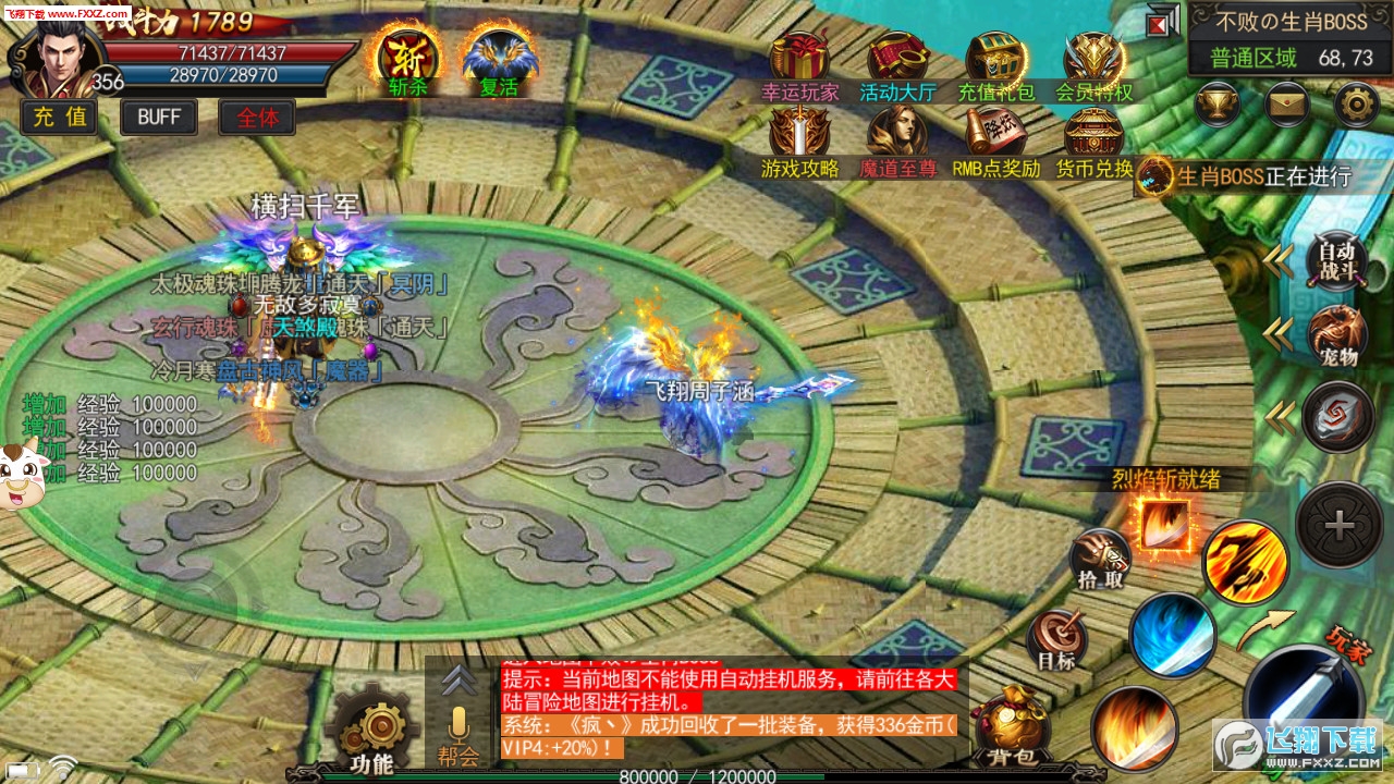 游戏中的装备,所有BOSS均有几率掉落终极装备!地图等级越高,刷新的BOSS等级越高,掉落高级装备的几率越大!特殊地图有额外爆率加成,地图额外爆率加成从高到底排序为:充值地图一美人地图〉称号地图一时装地图提升称号等级、Vl P等级,抢占战力强滴扫名,可提升打怪爆率!参与十二生肖活动,获得''生肖神佑",也可以提升打怪爆率!