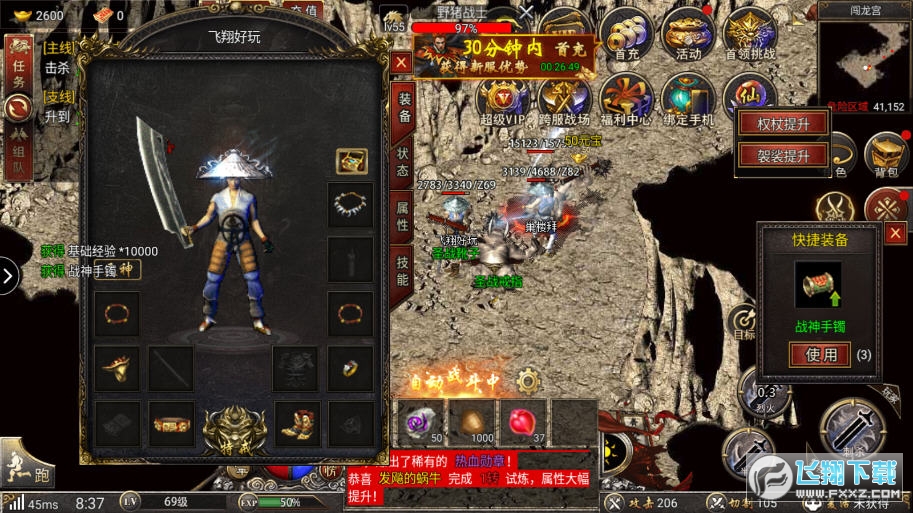 1、轻松挂机解放双手,游戏装备无绑定自由交易,稀世装备永久保值,屠龙霸业谁与争锋。
