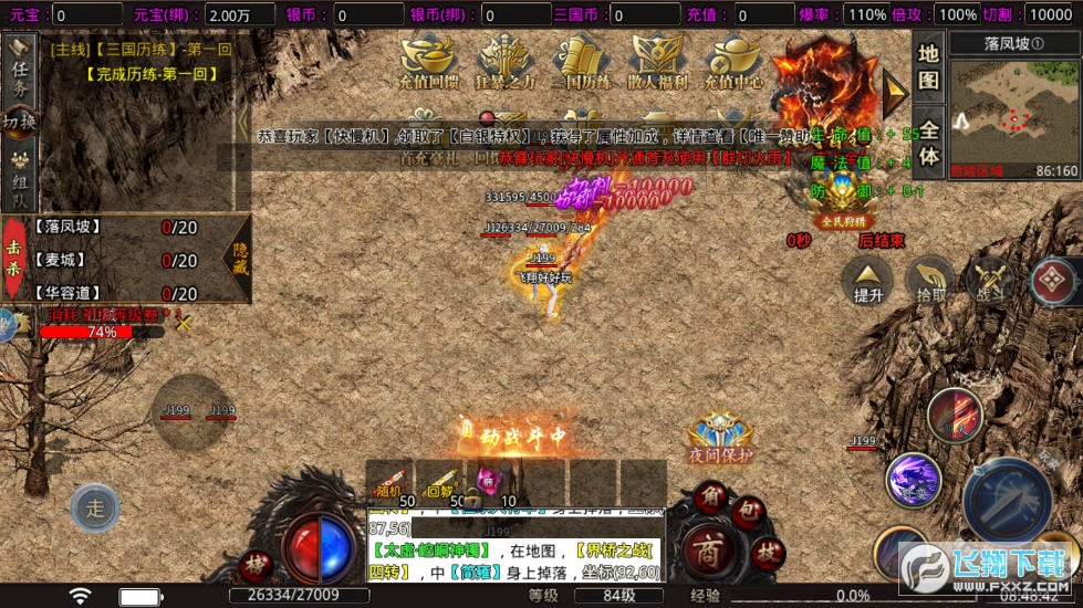 1、千人同屏,爆点升级,一招秒全屏,激烈的战斗让你震撼全场。