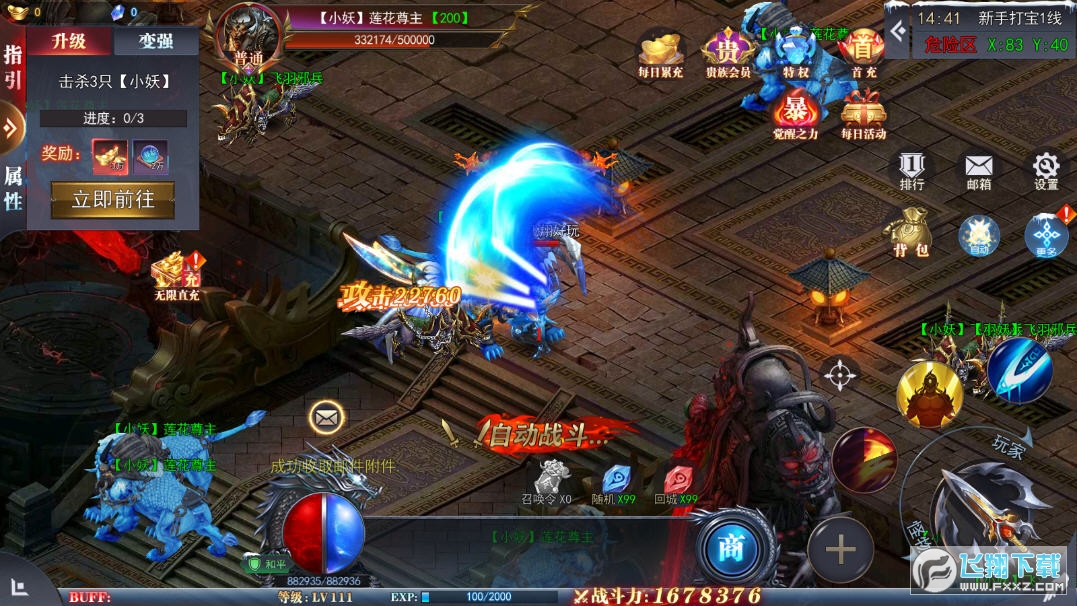 2、丰富的pvp和pve玩法可以体验,通过自由pk、多人团战、跨服战场、boss等等精彩玩法,体验酣畅淋漓的战斗过程。