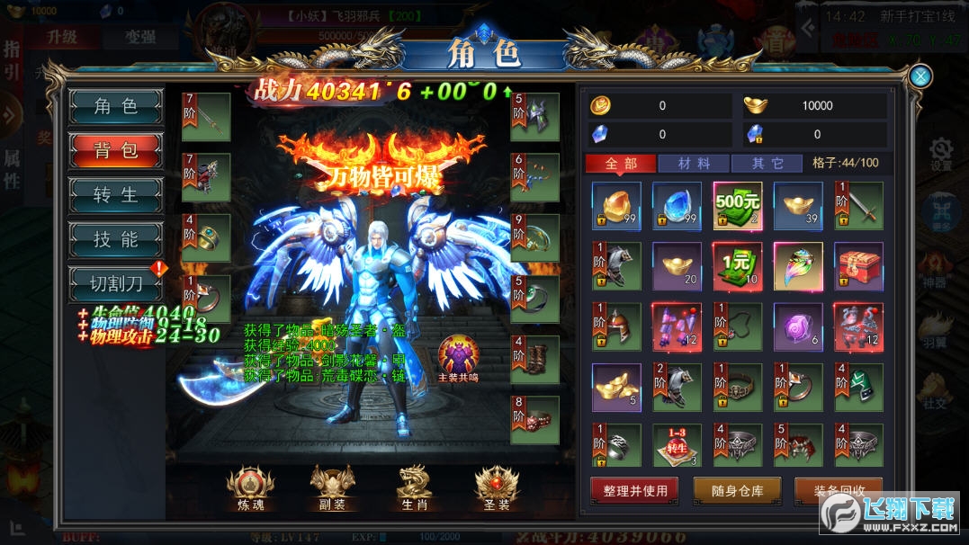 1、爆率全开,boss可以爆一切,拾取随机掉落的极品装备,不氪金也能玩的爽快。