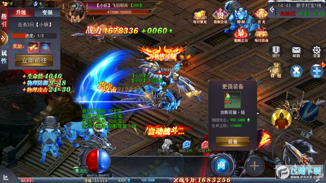 义战龙城万充高爆版手游开局就送各种真充福利,刀刀斩杀爆真冲,新手玩家上线就送一把青龙刀,真正散人玩家的天堂,0氪金拿终极装备,自由交易随心加点,丰富多样的BOSS玩法,让玩家体验疯狂刷BOSS的无限畅快感受,释放各种炫酷的技能,沉浸式进入这个杀伐的传奇世界之中。