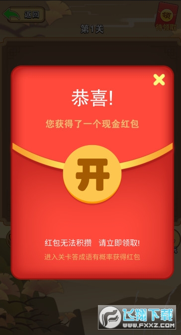 1、玩家通过猜出关卡题目给出的图片描述的成语来过关升级自己和随机获得红包;