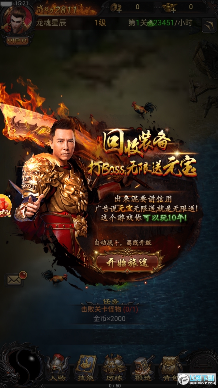 上线赠送上万钻石,满级vip,打怪掉落神器,野鸡也能出神刀。