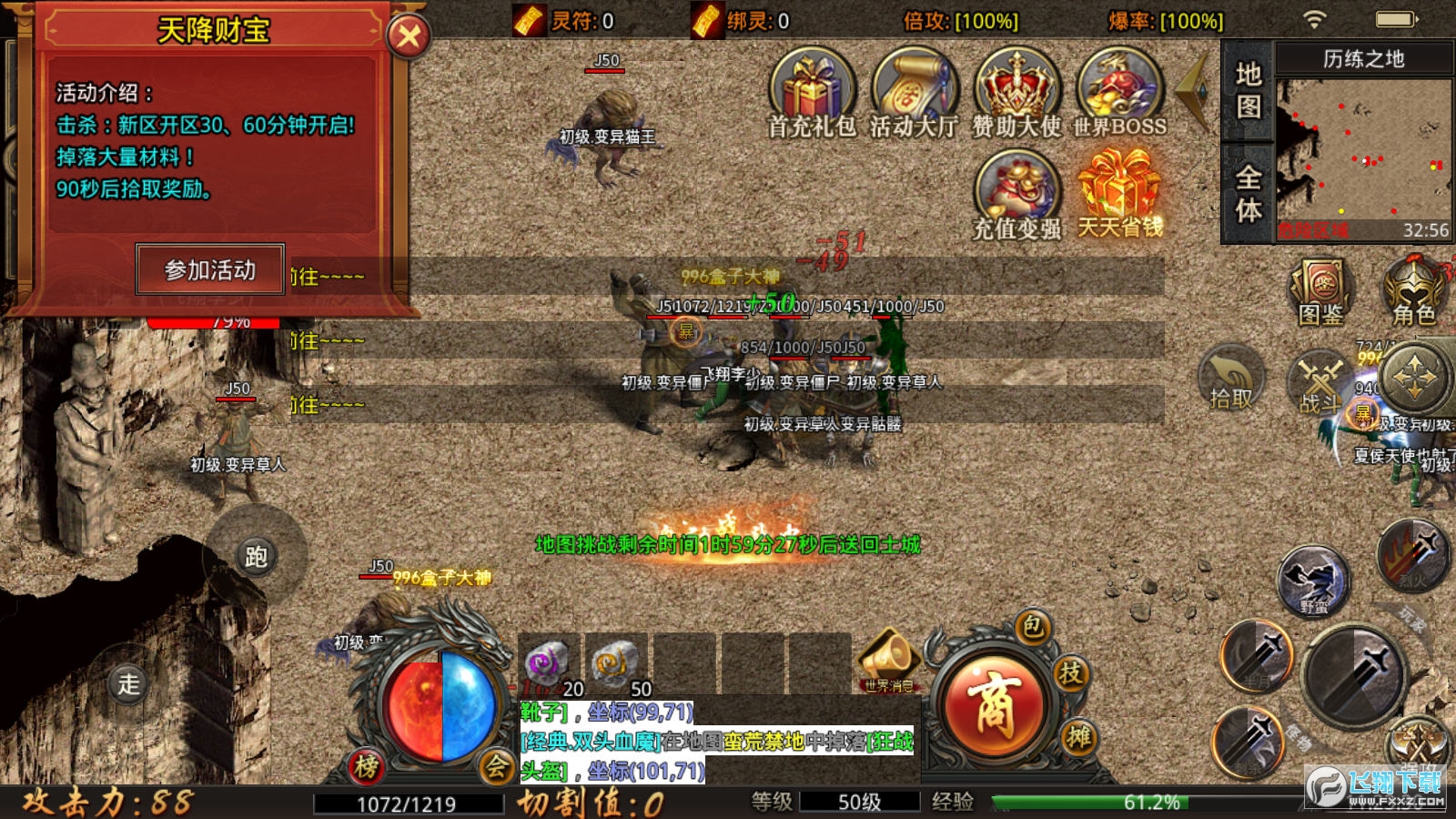 3、震撼视觉的战斗场景,极速的角色升级体验,海量BOSS不间断刷新。
