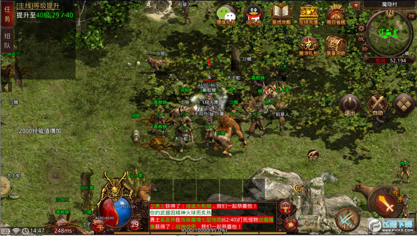 2、酷炫技能,全屏大招,装备回收,海量元宝,跨服对决等玩法,你想要的全都有!