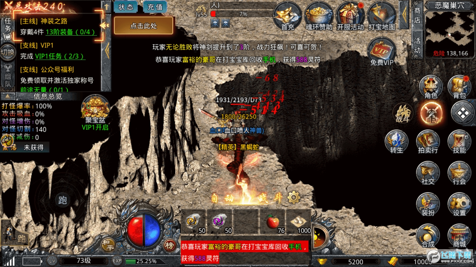 2.野外地图无限制进入,装备掉落爆率超高,轻松神装