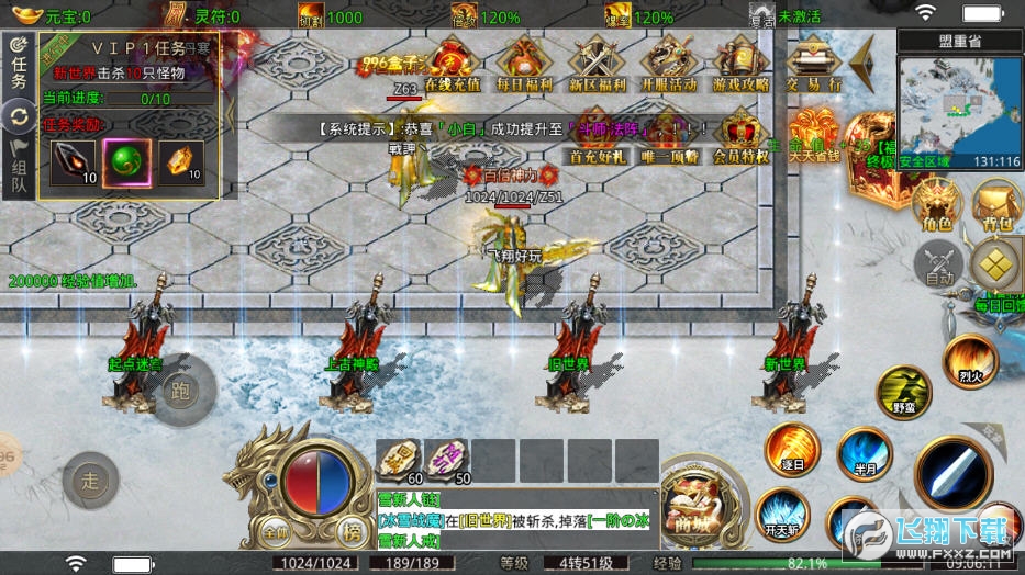 3、新手登陆可以免费领取超多经验和道具以及稀有装备,升级更快速。