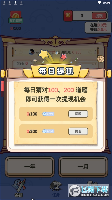 答题大富翁极速版,下载APP,答对5题。黑号提现时闪退,白号提现0.3元,秒到零钱!付款商户“欢橙科技”。