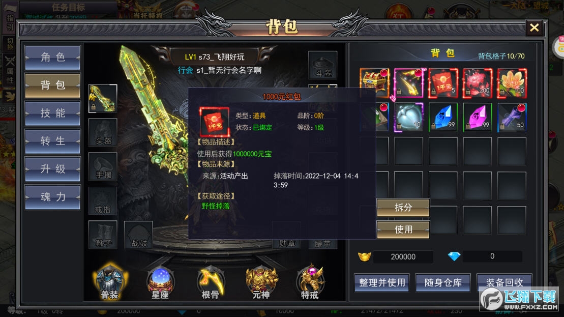2、独家福利二:超爽必爆满背包红包+元宝!