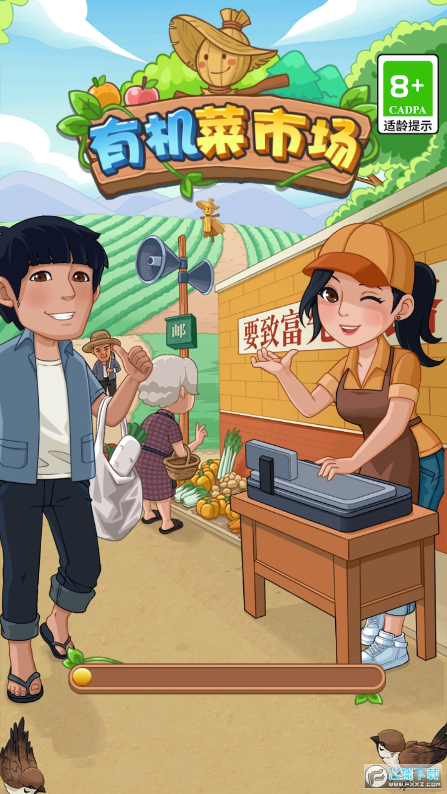 1、在这款游戏中玩家们在菜市场之中开设了一个店铺,你可以在这里去售卖自己的有机蔬菜的。
