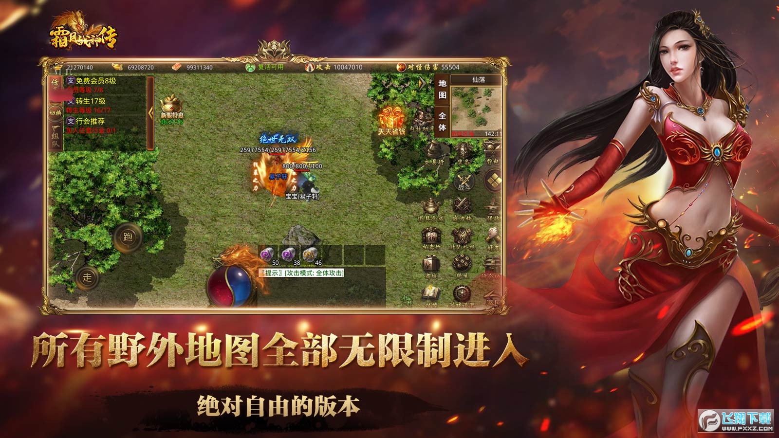 采用经典的玩法,让玩家体验原汁原味的炸裂的传奇游戏,体验他们的人生