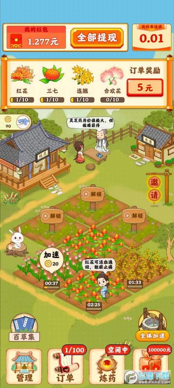 2、你需要种植不同的药材,收获之后,通过药炉制成成品售卖。