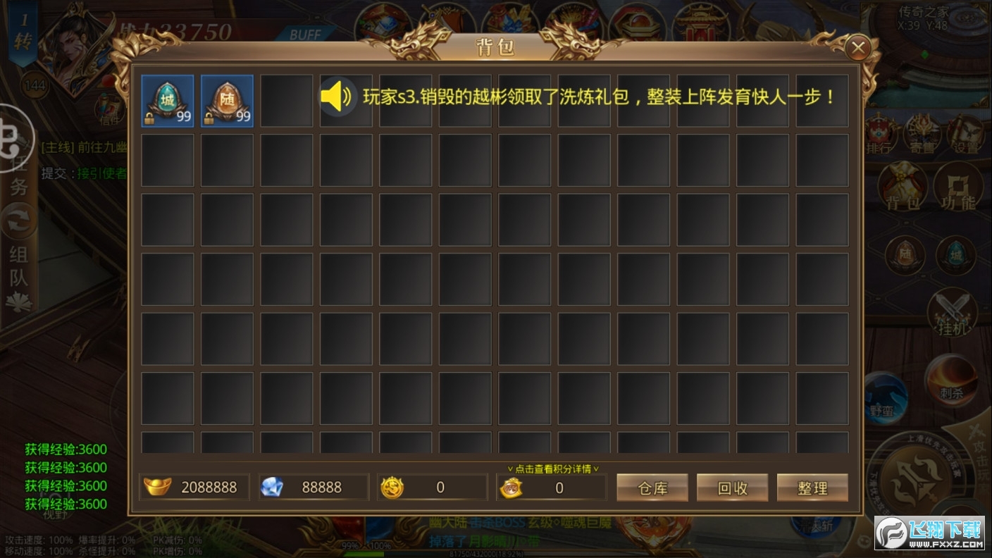 2、新手登陆可以免费领取超多经验和道具以及稀有装备,升级更快速。