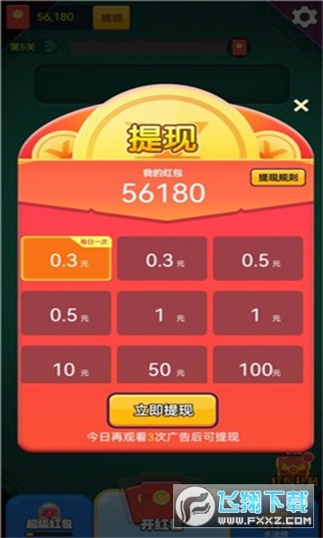 红包奖励:与普通消除游戏不同的是,鹊淘淘红包版还提供了红包奖励机制,玩家在游戏中可以赚取一定数量的红包奖励。