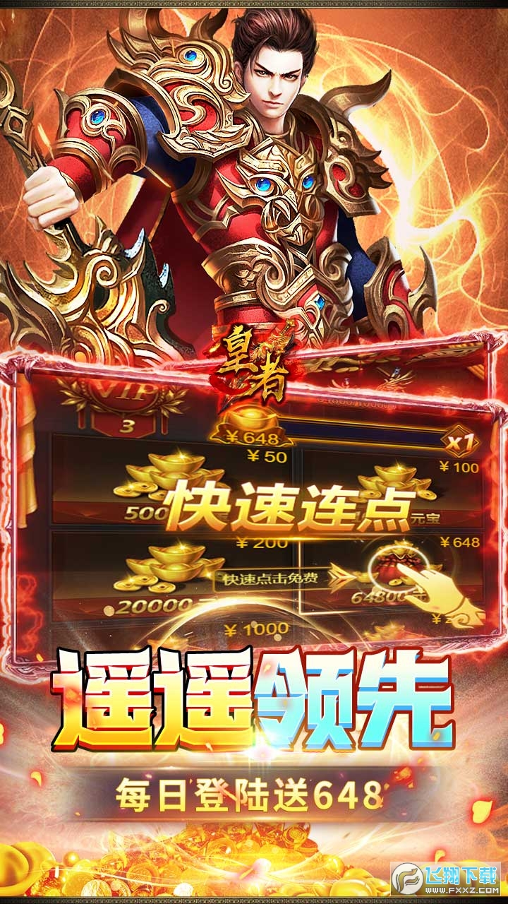 《皇者》经典传奇,皇者回归!本游戏承诺所有充值均为0.1折!游戏独创第四职业魔神,上线送万元充值卡登陆就送,更有每日登录领取真充卡,零元党也可以玩的很开心!游戏不但还原了经典的传奇特色,更加入了一些创新元素!让您和您的那些兄弟驰骋沙城,称霸全服!