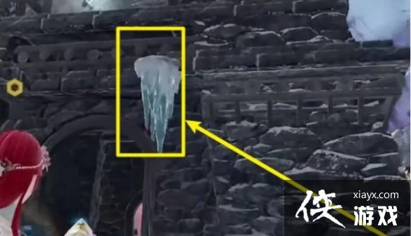 2、来到这里的城楼处,站在城楼处就能看到上面的冰锥了。