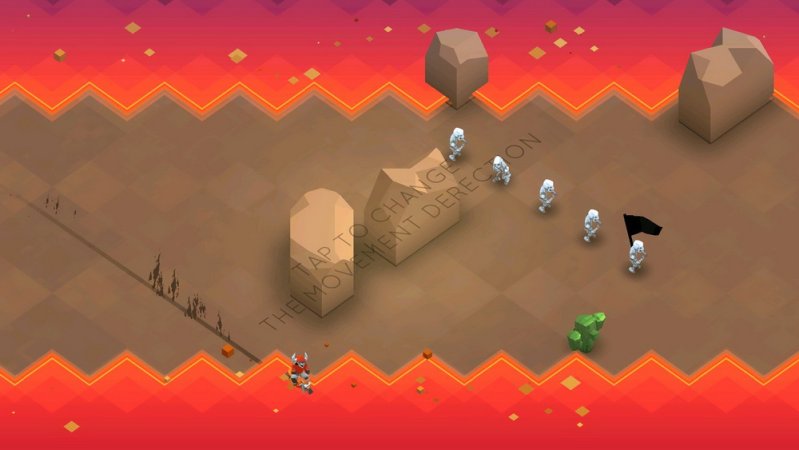 不得不说这是一款令人爱不释手的游戏。游戏玩法类似旋转直升机,玩家需要点击屏幕让主角转向以避免撞到障碍物。不过游戏远不止如此,玩家需要通过撞到地下城卫兵来得分,并时不时得换一个奔跑方向。击败了一定数量的杂兵之后,还可以和同样骑着摩托的骷髅领主进行boss战。看你能生存多久呢?