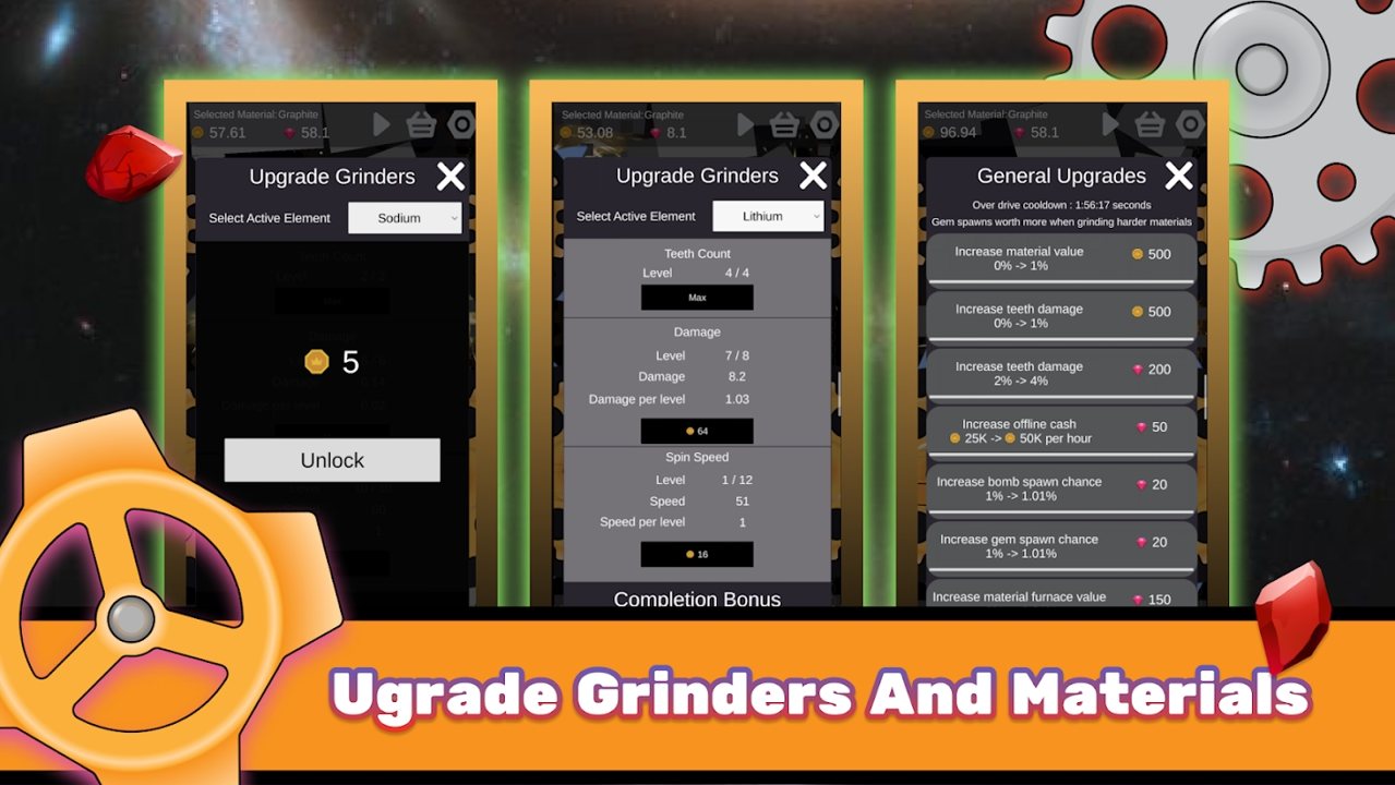 解锁 - 升级您的材料和研磨机。