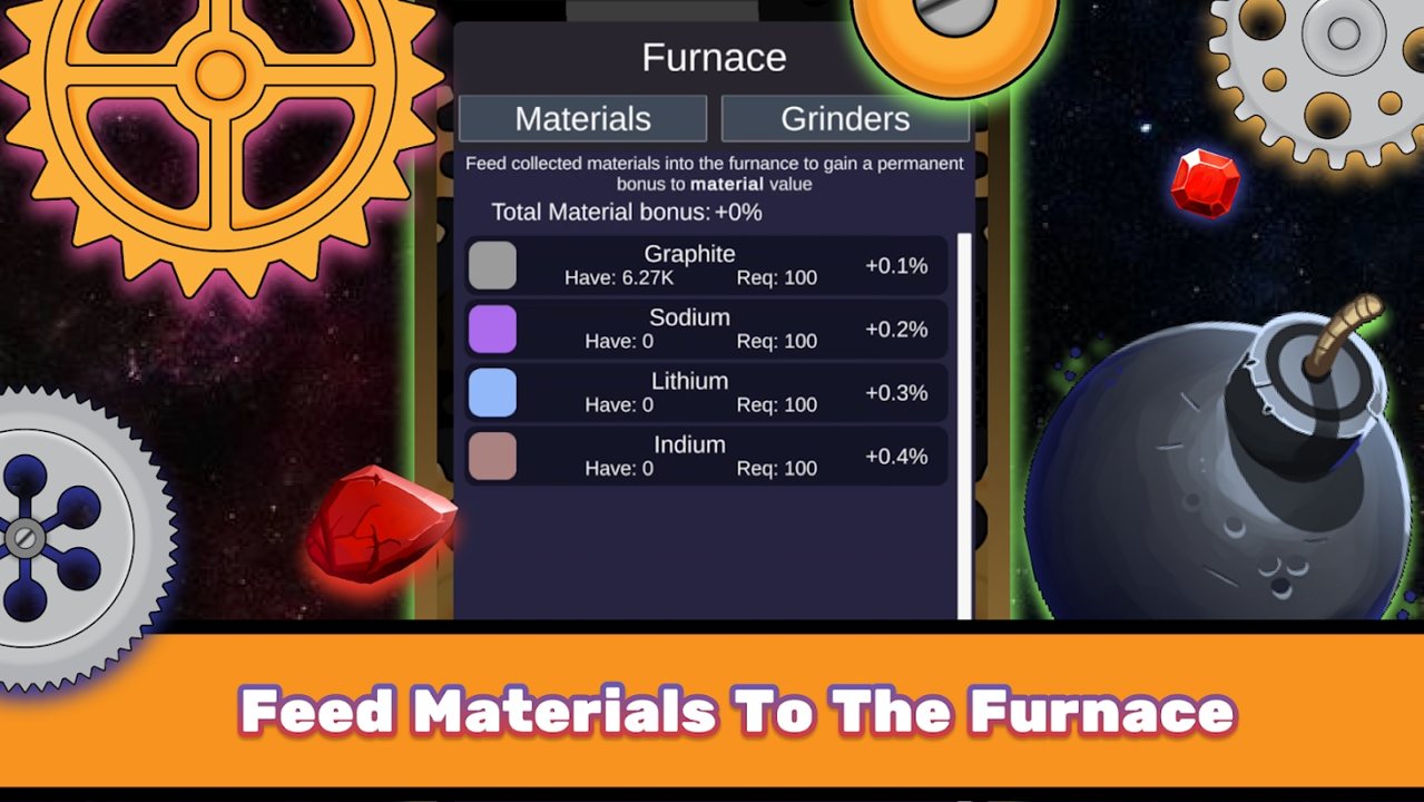 花费您在熔炉中研磨的材料来释放研磨机的力量。将您的研磨机从最柔软的材料升级到钻石。在这个渐进式游戏中,您将开始虚弱,但会变得强大!