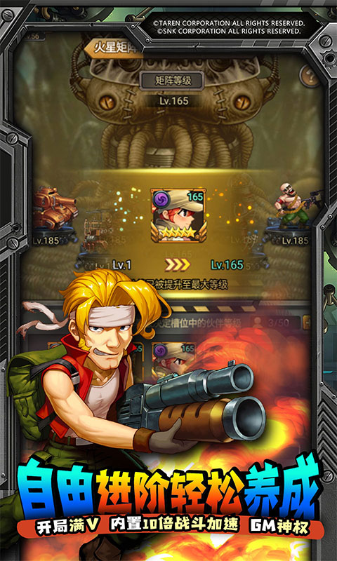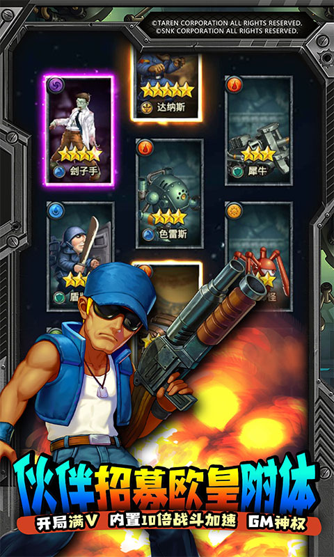 1、SNK正版授权放置手游:来玩就送GM特权万元充!2、开局赠送满级VIP15特权,10元宝购买VIP专享福利豪礼!3、免费赠送GM特权,海量资源、极品奖励任性放送!4、免费赠送千抽福利,极品角色任性抽取,人人免费做欧皇!5、全新战斗加速畅享体验版,战斗加速,收益体验统统翻倍!6、经典策略回合卡牌手游,养肝护肾不氪不肝福利多多!