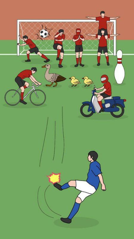 《奇怪的任意球 FreeKick》是一款以任意球为题材的点球类游戏,游戏的玩法很简单,点住屏幕并拖动,选好方向后放开手指即可,什么力度啊触球点什么的通通不需要——因为这款游戏完全只是在恶搞…游戏中的人墙君们为了守住球门,不择手段脑洞大开用上了一切手段去卖萌…这款小游戏在博得玩家会心一笑的同时,也能吸引着玩家们一直玩下去——看看下一关的人墙又会是怎样的奇葩。