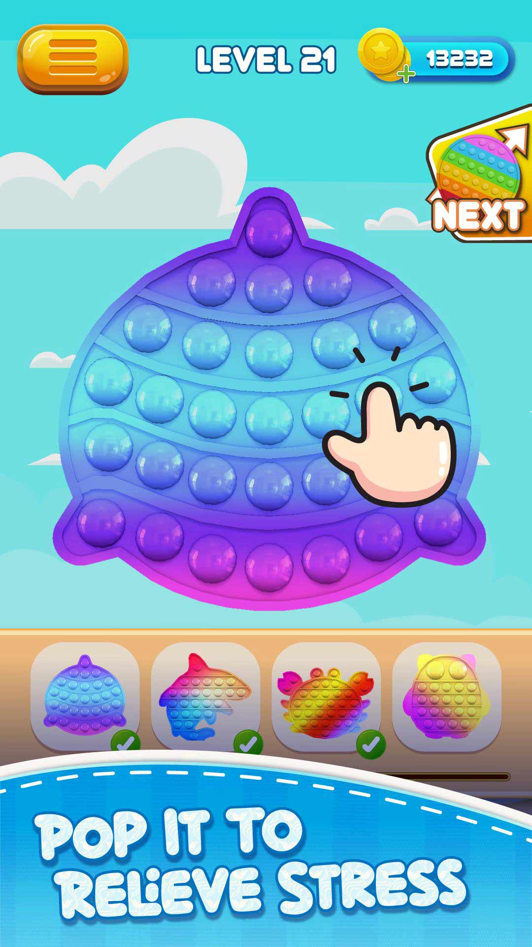 泡泡弹吧。抗压ASMR浮动玩具放松游戏是一个令人上瘾和平静的3D模拟器游戏,帮助你缓解压力。还记得当气泡膜在你的指尖上 "啪 "的一声,那种满足和放松的感觉吗?不能等待你的下一个订单来爆膜吗?现在你可以做到了。随时随地,就在你的手机上用Bubble Pop It。Antistress ASMR Fidget Toys Relaxing Games! 这个模拟器游戏包含上百个3D抗压ASMR小玩意游戏,有很多形状和颜色,结合精确的声音设计,保证给你带来无尽的ASMR感觉,平息你的渴望。点击并享受真实的ASMR声音,即气泡破裂的声音,以及硬币的轻响--这种组合将按摩你的耳鼓,使你的大脑愉快地发痒。通过弹出所有给定的小玩意游戏,完成一个又一个关卡,收集并保存硬币,以解锁整个系列的120个项目,包括 "弹出"、"简单酒窝 "和 "泡泡",以及美丽的主题背景,以定制你自己的放松空间。继续弹出,在你收集的小玩意中找到更多隐藏的奖励。想要一个有效的抗压疗法,无论何时何地,只要你有五分钟的时间,就能找到所有正确的音符吗?那就玩玩泡泡糖吧。抗压ASMR浮动玩具放松游戏,现在就可以立即获得感官上的愉悦和压力的缓解!