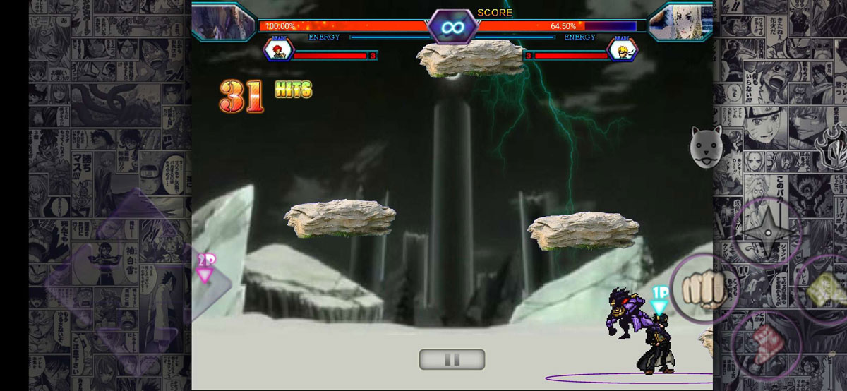 本作中玩家可以自由选择两部动漫中角色进行大乱斗游戏,超酷的人物设计,各个角色都有着自己特色技能,更可以使用连招秒掉对手。