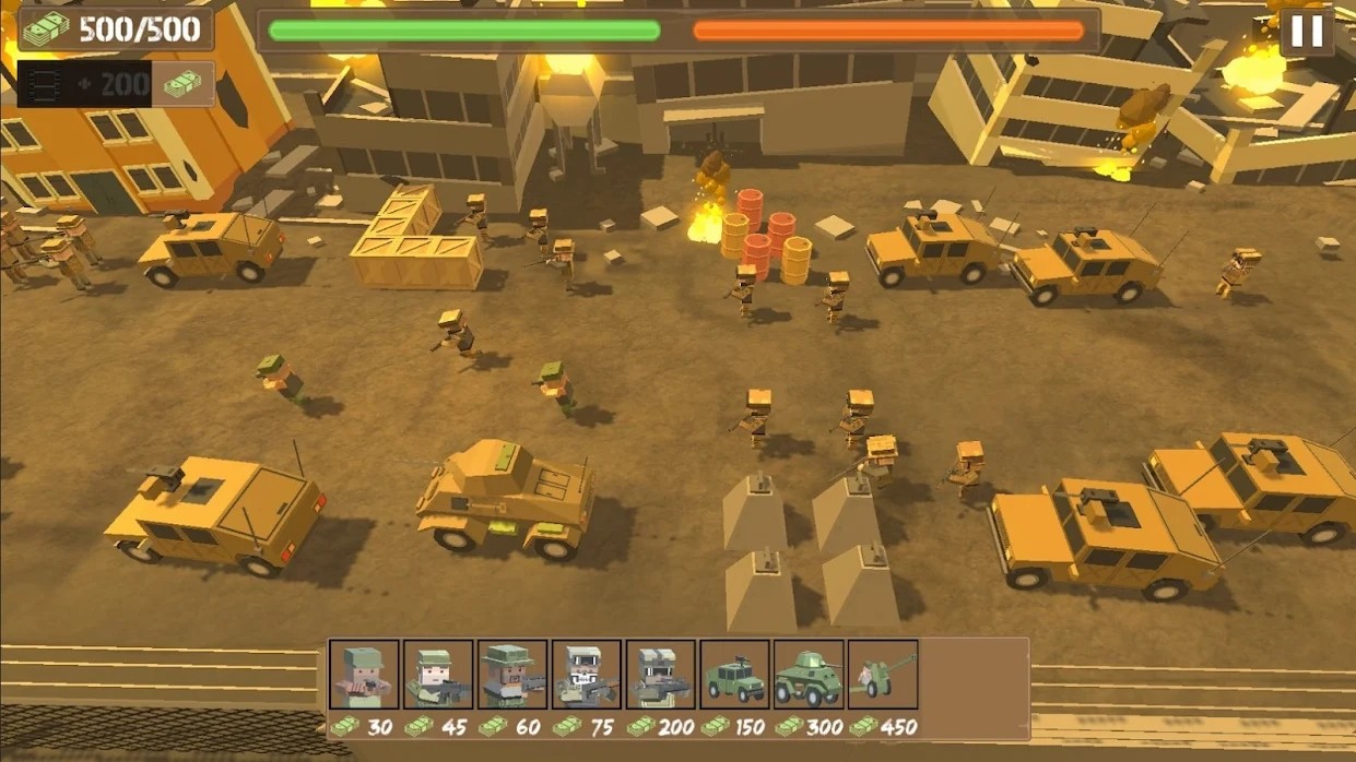 坦克: 具有强大攻击力的装甲单位。部署在战争任务中的坦克是对您军队的极大支持。这些是昂贵的单位,但会在任何战斗中赢得您的战争游戏。