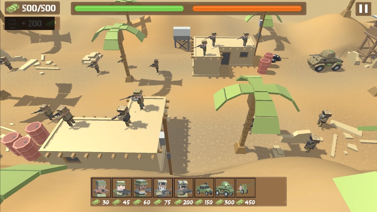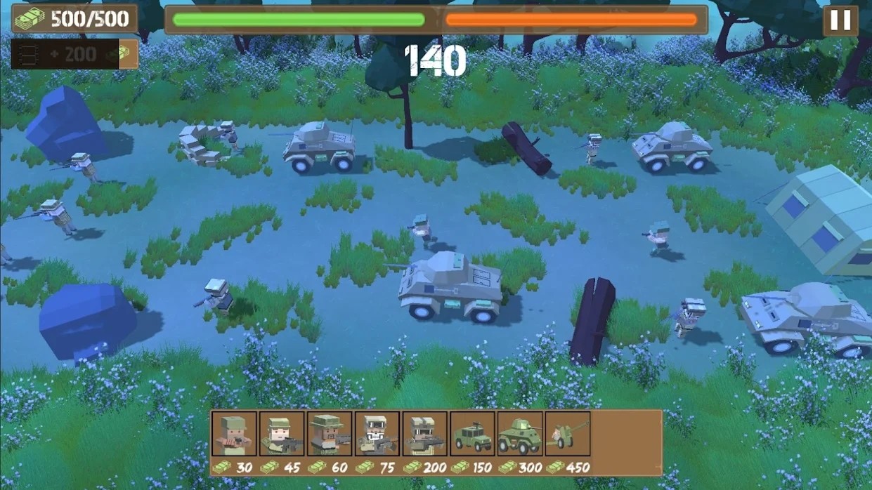 指挥官,您需要在全新的二战战略游戏中控制您的军队。在这个策略游戏中,您必须与莱昂将军的邪恶势力作斗争以拯救您的国家;雷沃尼亚王国。在您的指挥下是王国中最勇敢的部队,您首先指挥弱小的部队,例如持枪的学员。随着您取得更多胜利,您可以使用狙击手、咕噜声、吉普车、坦克和大炮升级您的军队和士兵。游戏玩法灵感来自手机上一些最好的军队游戏,这款游戏将挑战您的 RTS 技能。