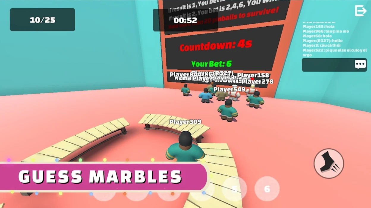 游戏现在有6种模式:红绿灯、糖果跑酷挑战、拔河比赛、猜弹珠、过桥、最终平台。您还可以挑战生存 3 天随机。每个房间最多支持 32 人同时在线。立即在“螃蟹挑战:生存游戏”中享受独特有趣的免费在线多人生存游戏体验,开始您的冒险派对。