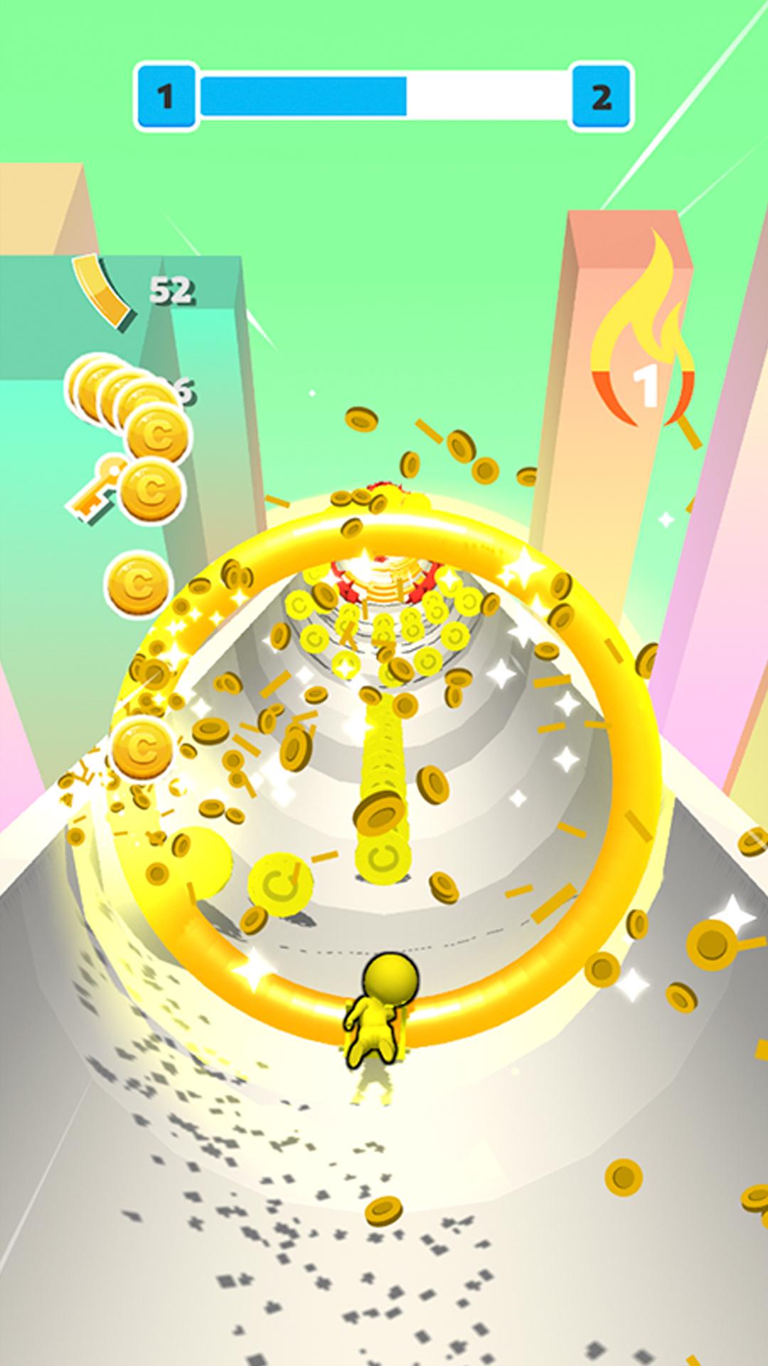 创建一个完美的环环以到达平台的末端。注意障碍物。 9 种不同类型的戒指和无尽的关卡!