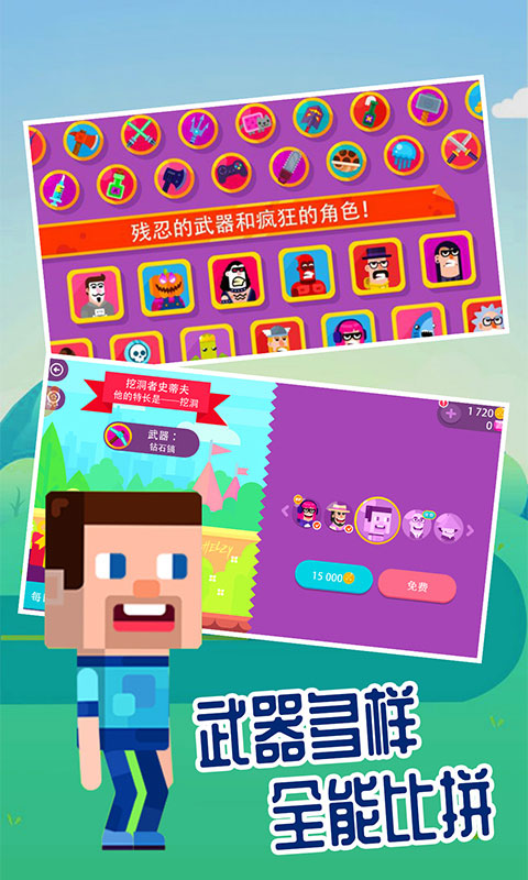 游戏中两个人物相隔数米,你需要调整角度和力度使你的武器以抛物线形式飞出,击中你的对手,每一个角色将会拥有一件属于自己的武器, 关卡丰富,类型众多,适合玩家来挑战,游戏的操作简单,锻炼了玩家的物理思维能力