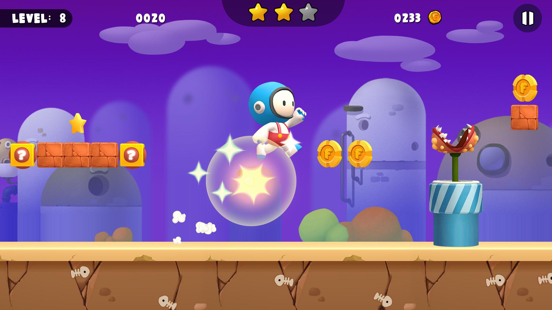您的任务是帮助主角穿越神秘的丛林,跳过障碍物,收集隐藏在砖块中的硬币和强大的物品,以帮助您轻松击败怪物或有机会复活。不要忘记在最终目的地拯救美丽公主的重要任务。该游戏是免费游戏,您可以离线玩。