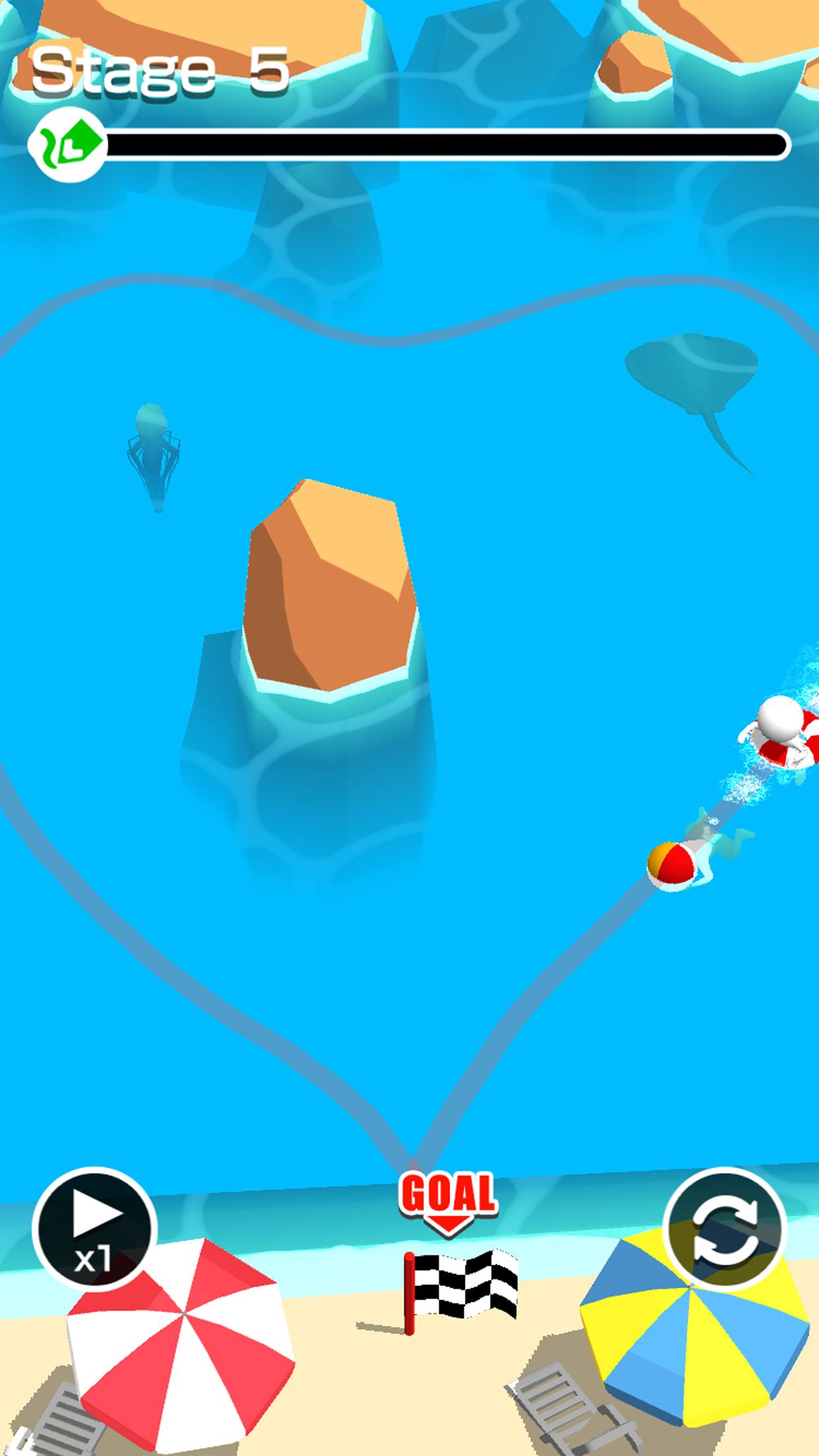 在救生员将采取的路线上画一条线。 拯救溺水的人!