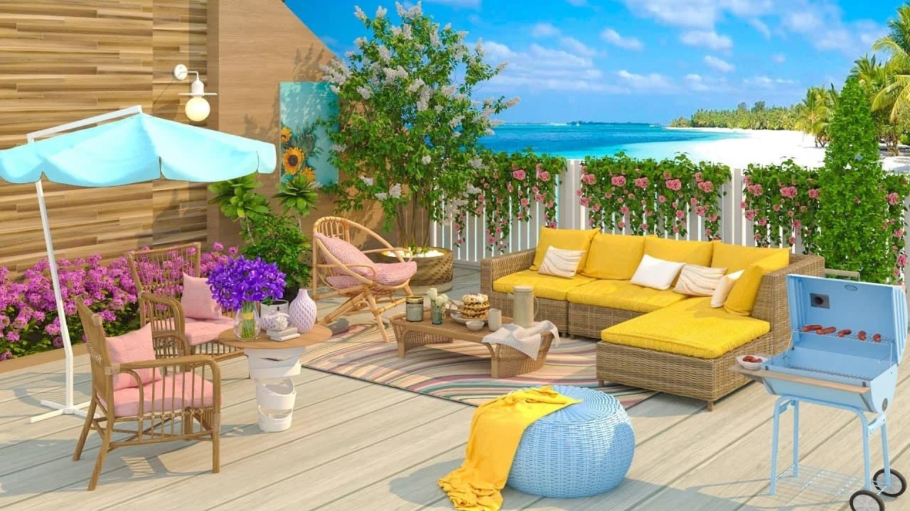 在明亮和阳光充足的地方设计美丽的海滩房屋,并在轻松有趣的三消家居改造游戏中解决数百个有趣的三消谜题。